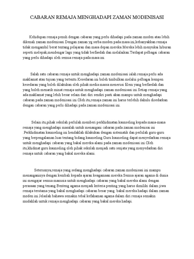 Cabaran Remaja Menghadapi Zaman Modenisasi