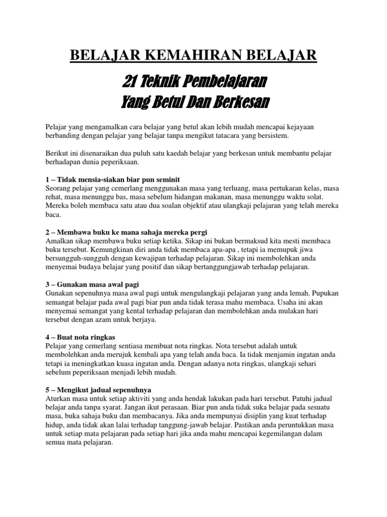 21 Teknik Pembelajaran Yang Betul Dan Berkesan Belajar Kemahiran Belajar