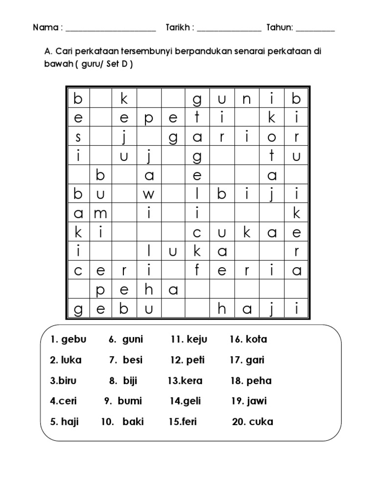 Pelbagai Teka Silang Kata Bahasa Malaysia Tahun 1 Yang Sangat Terhebat Untuk Ibubapa Muat Turun Cikgu Ayu