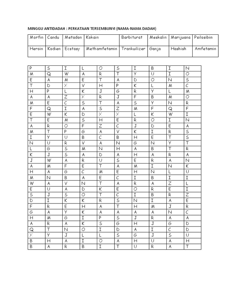 Minggu Antidadah Cari Perkataan Tersembunyi
