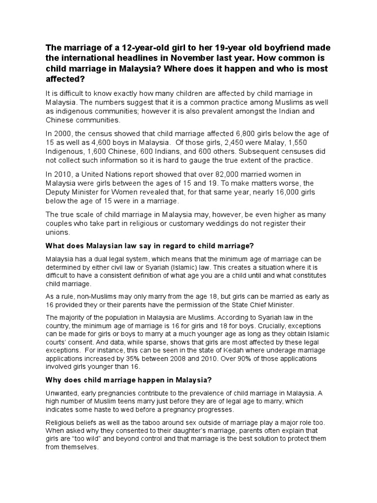 Child Marriage In Malaysia Assignment Child Marriage Malaysia