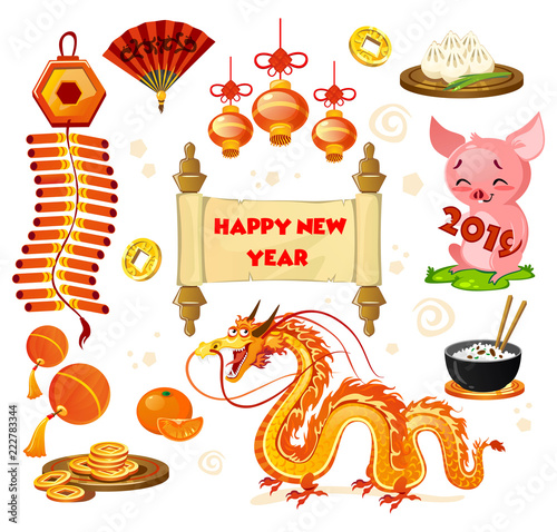 Chinese New Year Symbols Set Isolated On White Background Cartoon New Year Decorations Vector Illustration Buy This Stock Vector And Explore Similar Vectors At Adobe Stock Adobe Stock