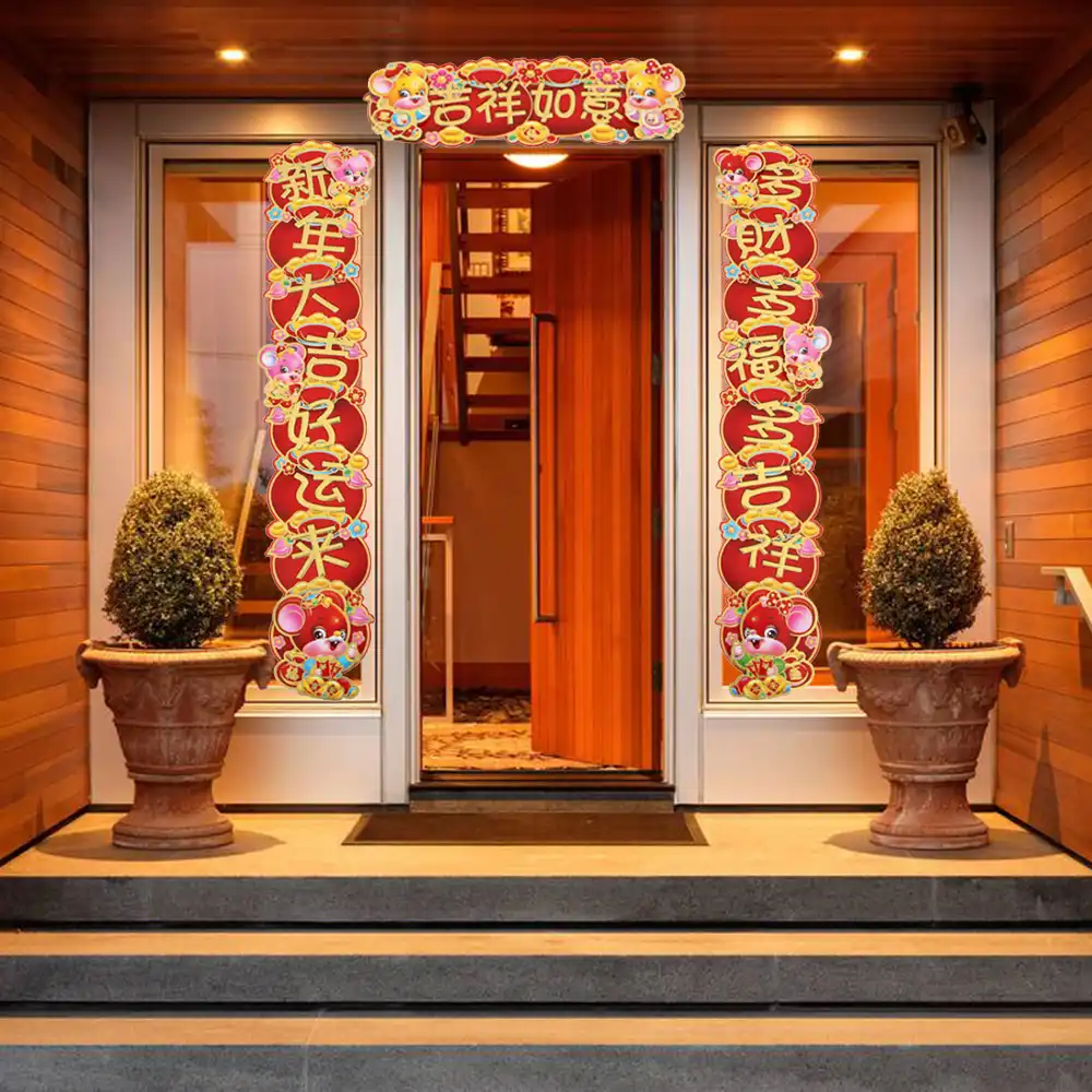 2020 New Year Chinese Blessing Decoration Couplet Spring Festival Diy Decorations Lion Stereo Couplet Home Door Decor Aliexpress