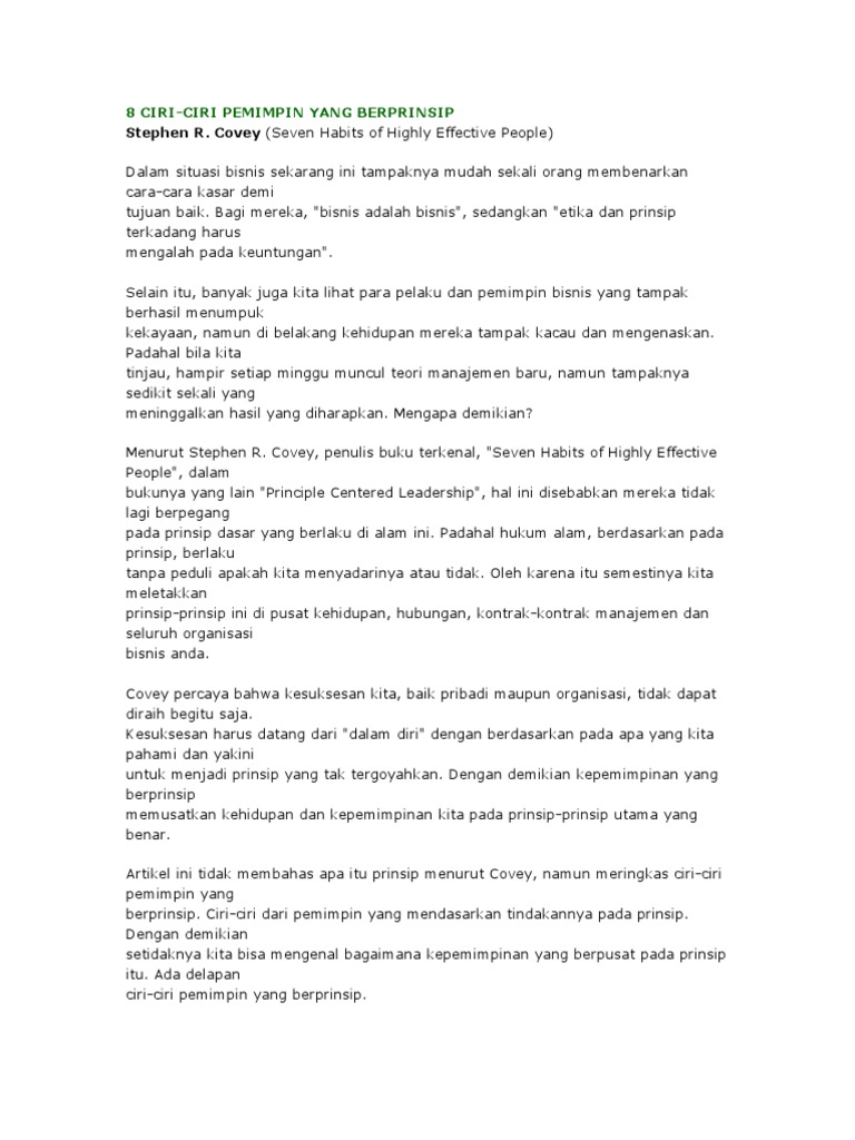 8 Ciri Pemimpin Steven Covey