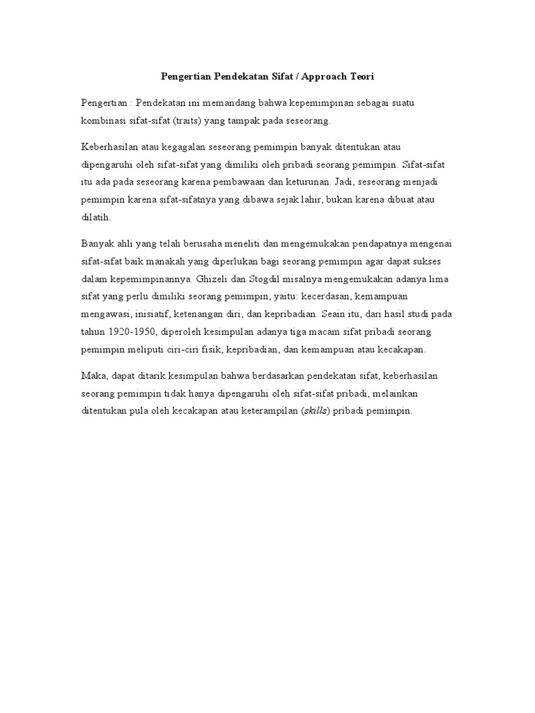Pendekatan Sifat Dalam Kepemimpinan