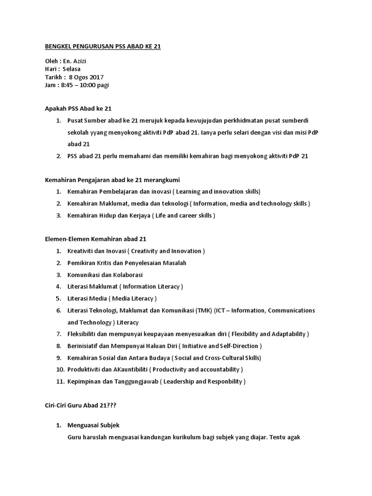 Bengkel Pengurusan Pss Abad Ke 21