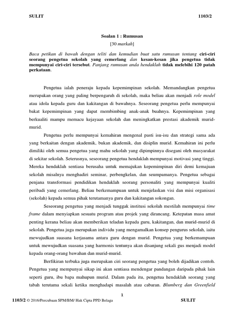 Baca Petikan Di Bawah Dengan Teliti Dan Kemudian Buat Satu Rumusan Tentang Ciri Ciri