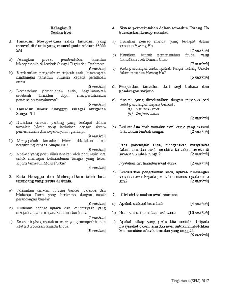 Soalan Sejarah Tingkatan 4 Tamadun Hwang Ho Selangor R