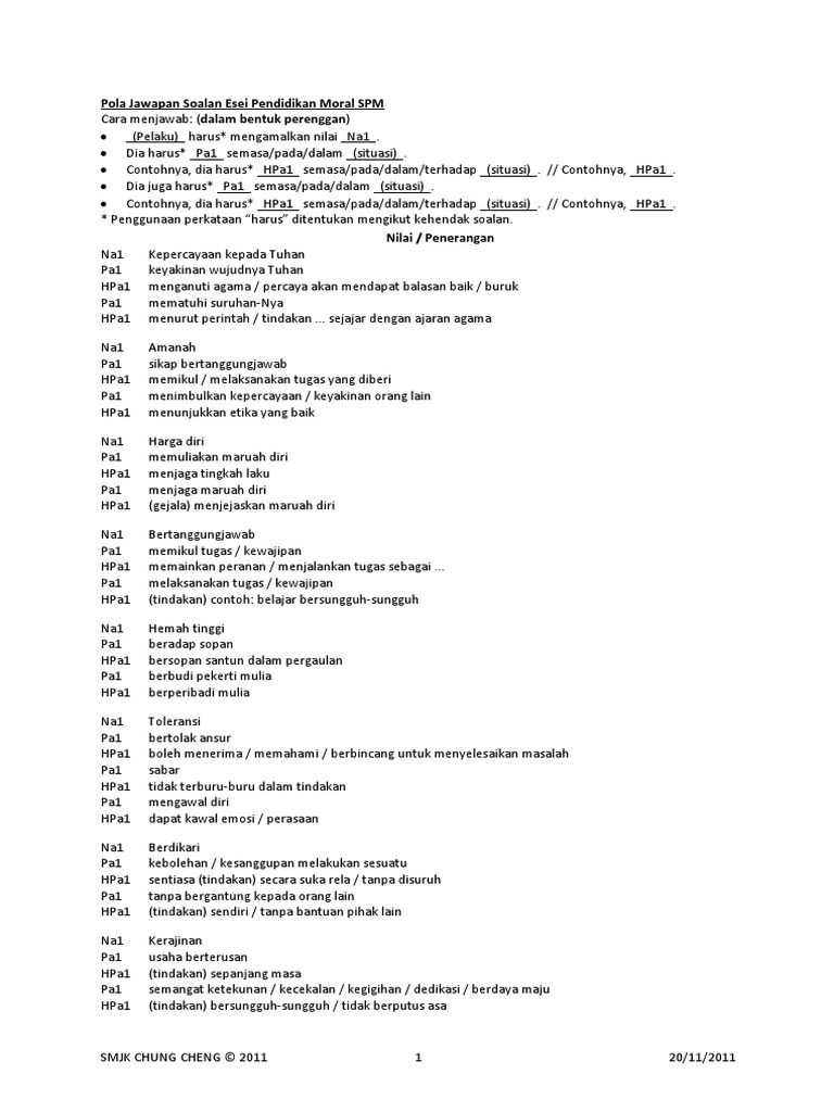 Format Terkini Untuk Soalan Esei Pendidikan Moral Spm Docx