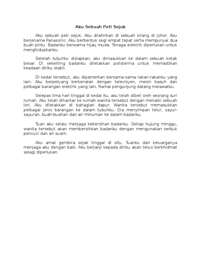Karangan Aku Sebuah Peti Sejuk