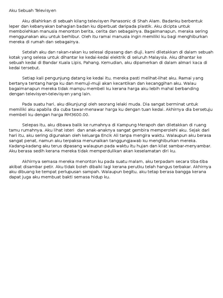 Contoh Karangan Autobiografi Aku Sebuah Televisyen