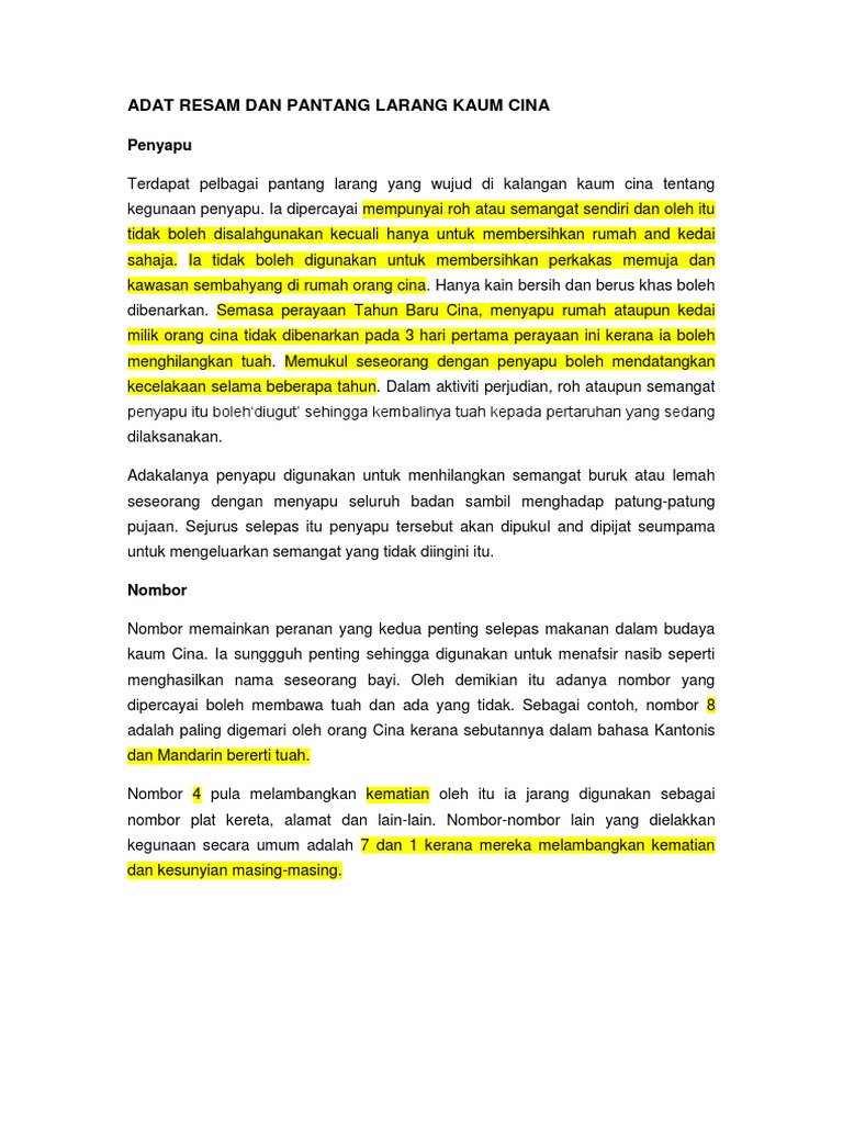 Contemporary Da Wah Adat Resam Pantang Larang Kaum Cina