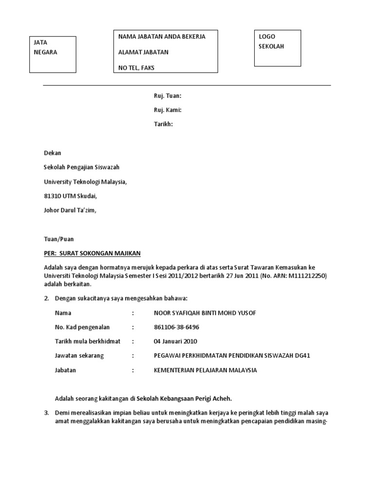 Contoh Surat Sokongan Untuk Temuduga Backup Gambar