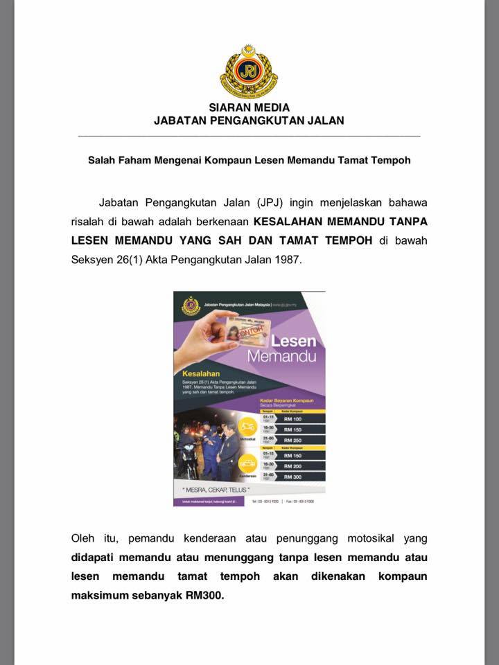 Jpj Tawar Diskaun Bagi Kadar Kompaun Kesalahan Tiada Lesen Memandu Atau Sudah Tamat Tempoh Paultan Org
