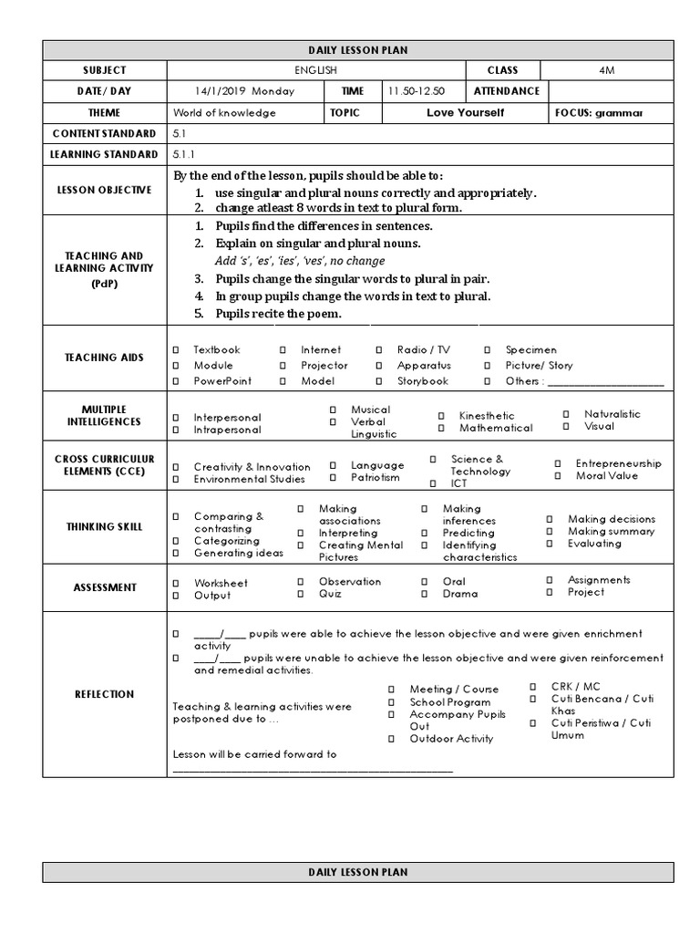 Rancangan Pengajaran Harian Panitia Bahasa Melayu Sk Bukit Balacon Mata Pelajaran Bahasa Melayu Kelas 5 Intelek Tarikh Templates Critical Thinking Education