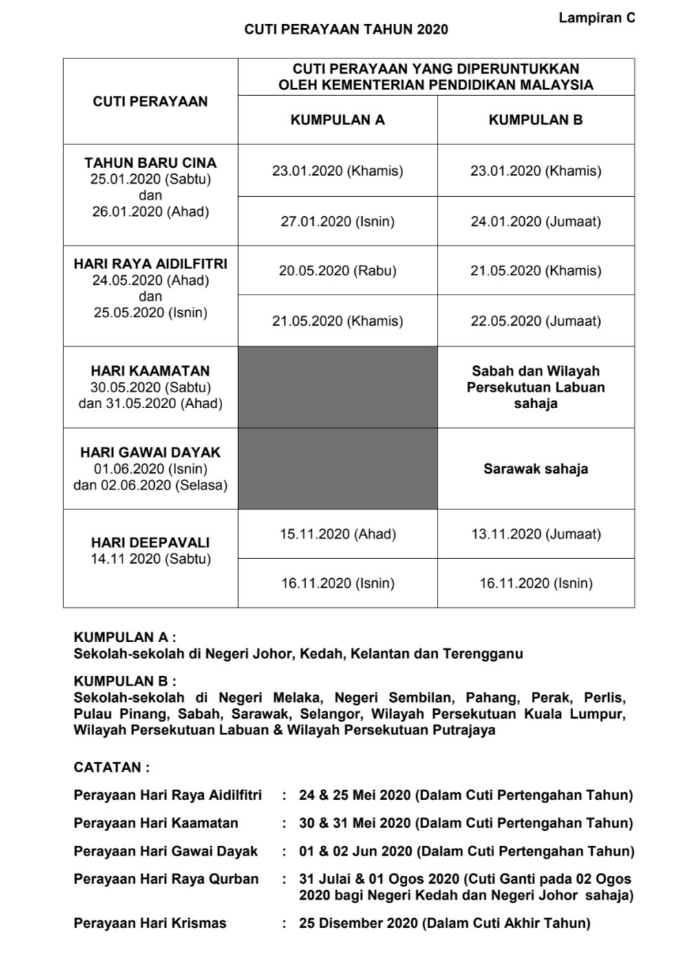 Takwim Cuti Sekolah 2020 Senarai Cuti Umum Dan Cuti Perayaan Di Malaysia
