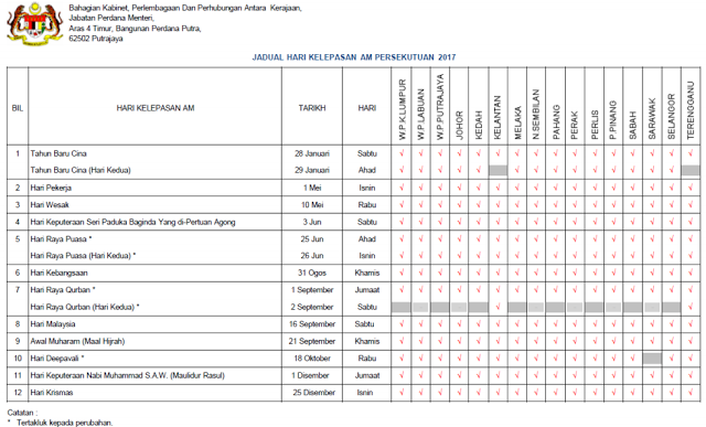 Kalendar Cuti Umum Dan Cuti Sekolah 2017