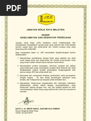 Dasar Keselamatan Dan Kesihatan Pekerjaan Pdf