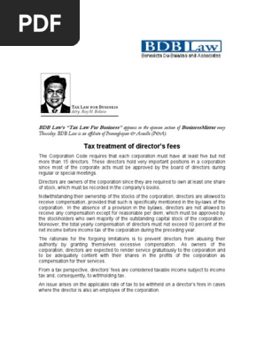 Tax Treatment Of Director S Fees Bdb Law S Tax Law For Business Businessmirror Board Of Directors Value Added Tax