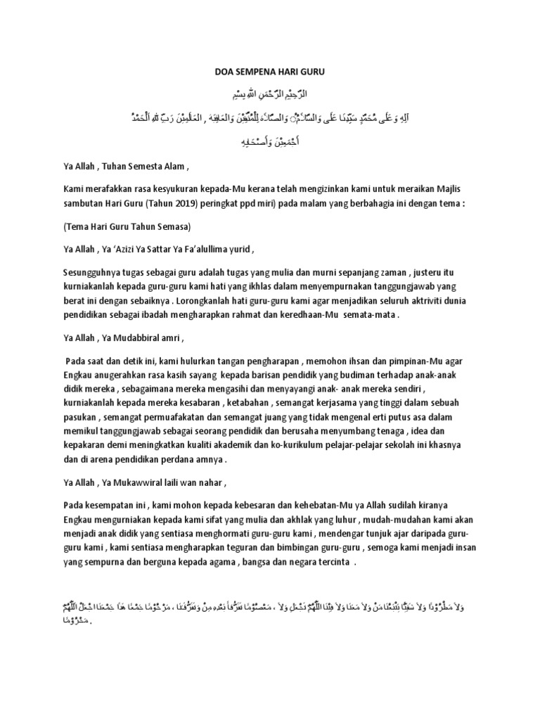 Pendidik2u Doa Majlis Sambutan Hari Guru 2019 Versi Pdf Facebook