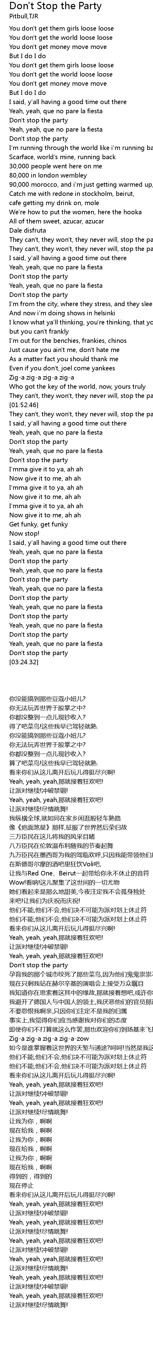 Lyrics Don T Stop The Party Pitbull Youtube