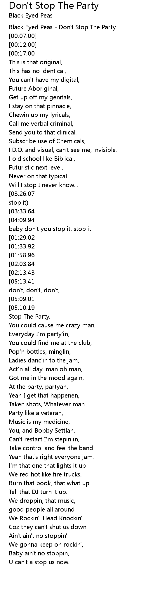 Don T Stop The Party Lyrics By Black Eyed Peas Don T Stop The Party